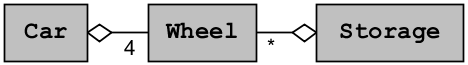 Car and Storage contain a reference to an instance of Wheel as part of Car's and Storage's state. The end of the aggregator